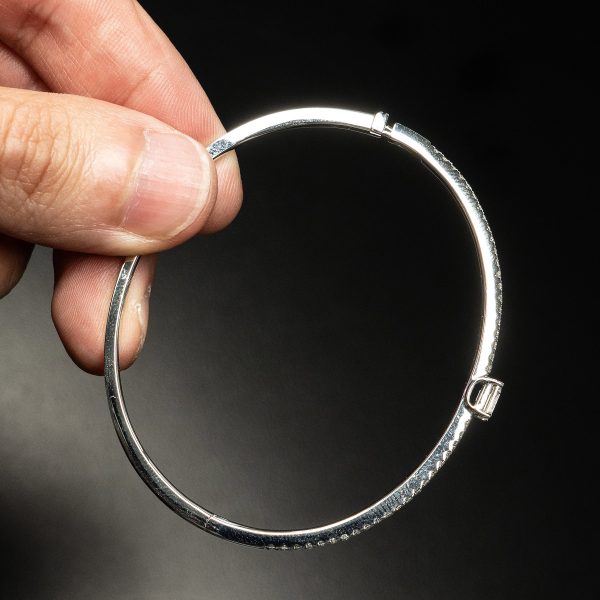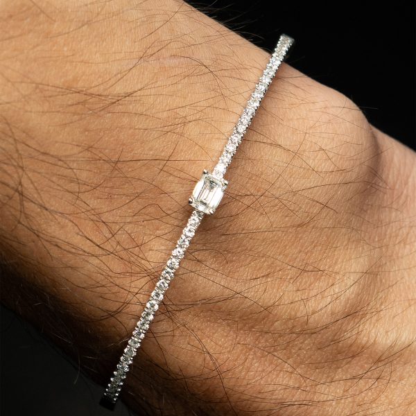 18k White Gold Emerald Cut Diamond Pave Bangle Bracelet