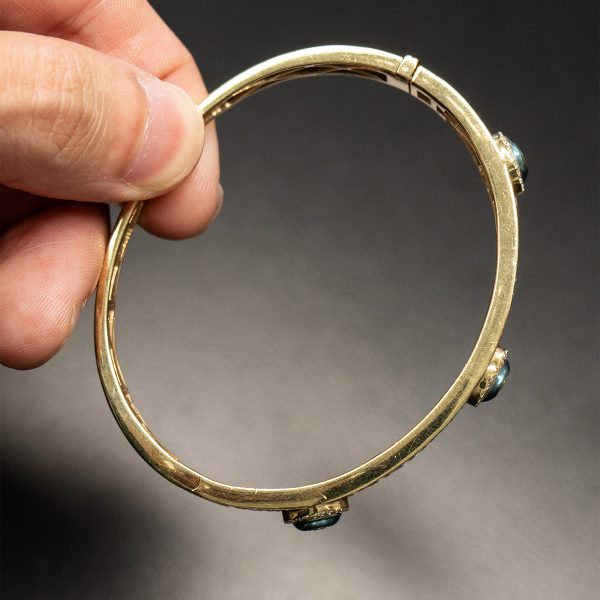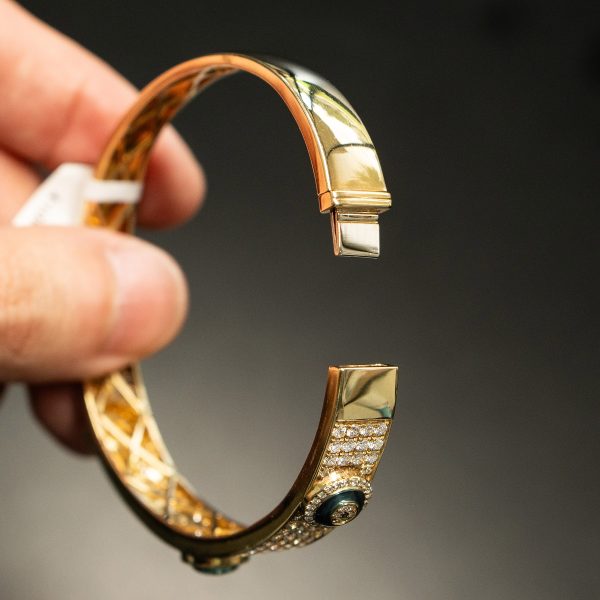 18k Yellow Gold Evil Eye Diamond Bangle Bracelet