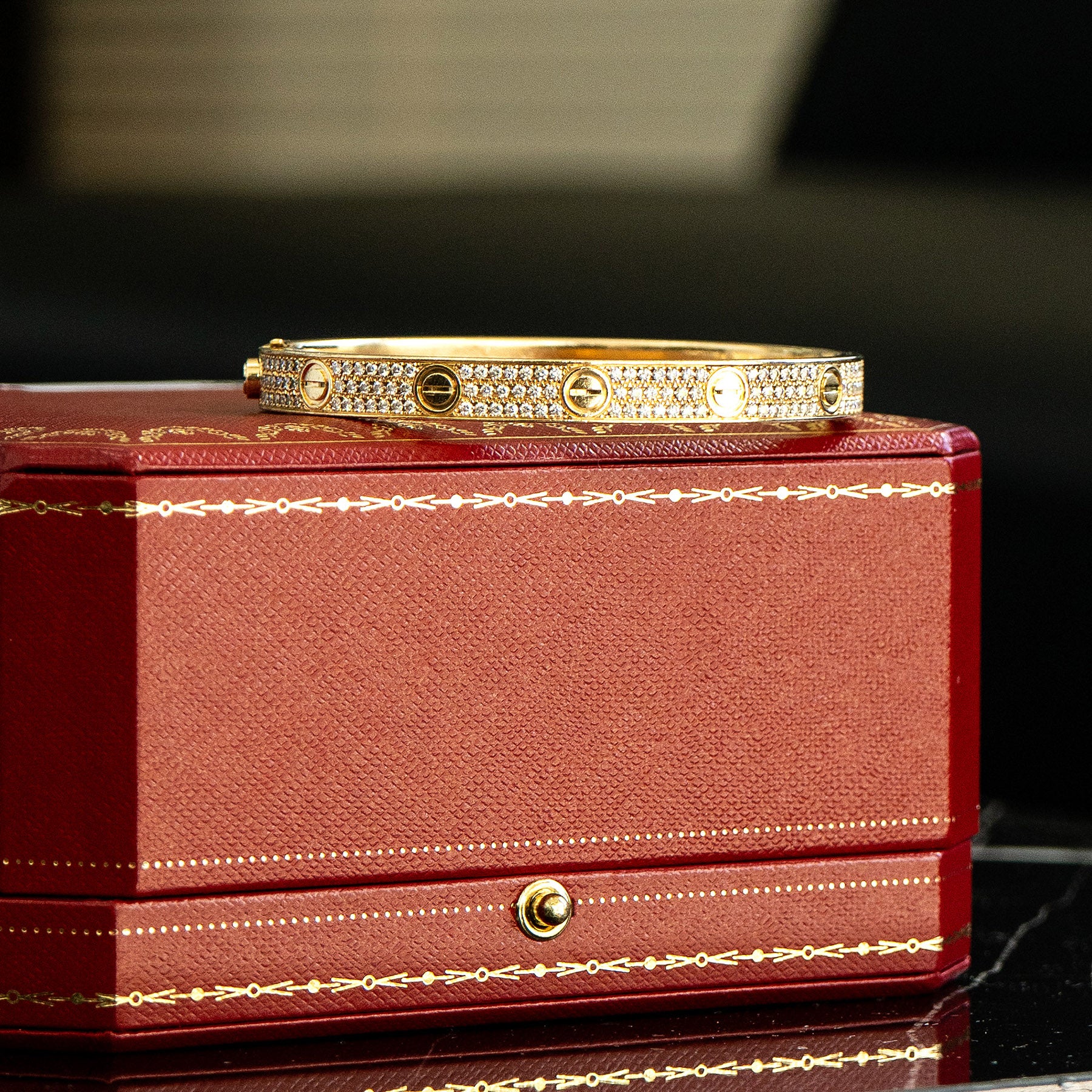 Cartier Yellow Gold Love Bangle Diamond Pave