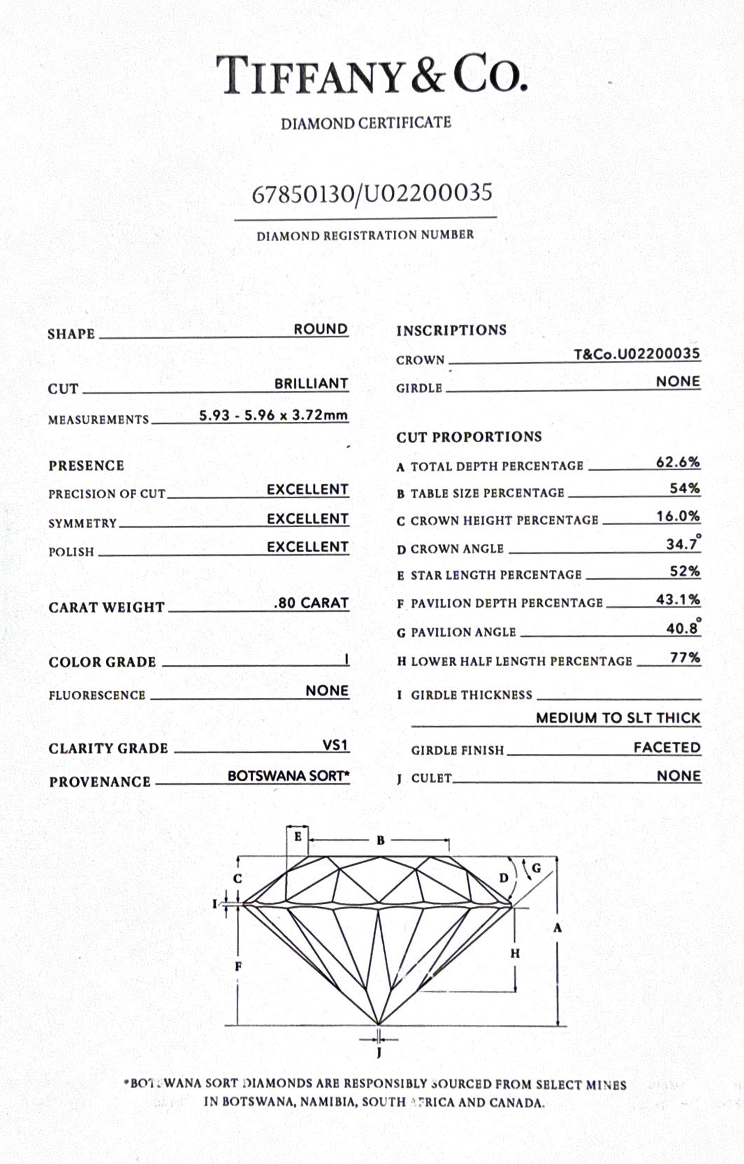 Comes with original box and certificates Tiffany Certification Numbers: |